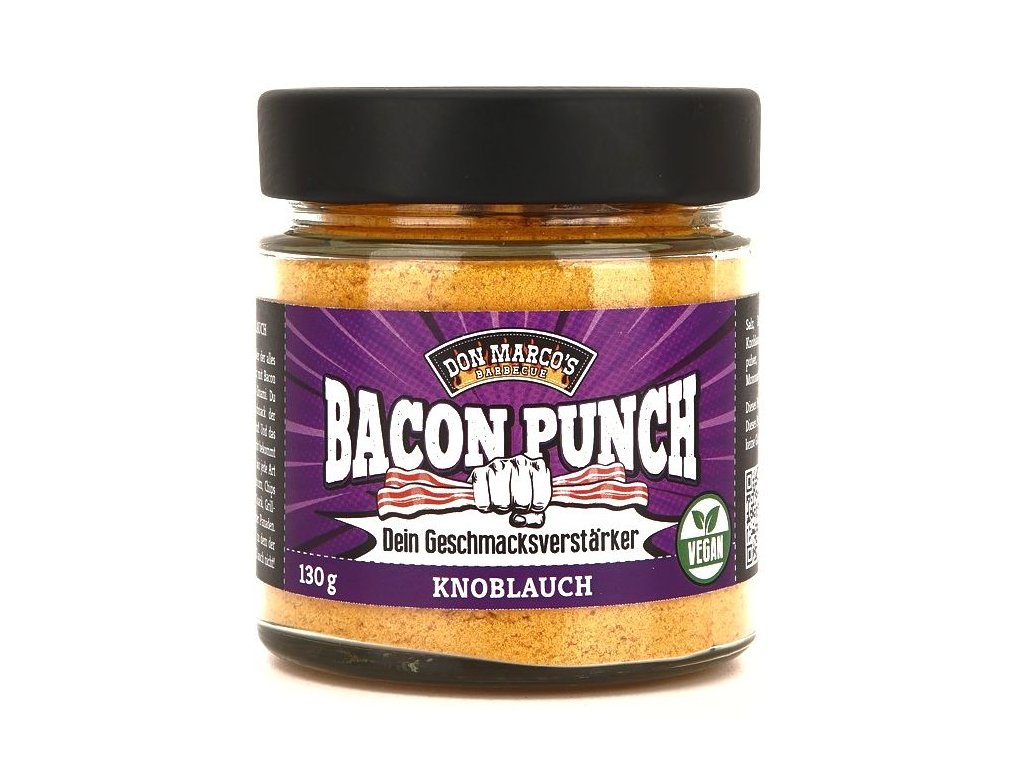 Veganský zvýrazňovač chuti, díky kterému bude všechno chutné. Univerzální koření s příchutí slaniny, česneku a umami. Získáte pikantní chuť, která vás zasáhne jako „rána“! A bez živočišných přísad! Každé jídlo může získat něco navíc. Tím máme na mysli jakoukoli zeleninu, hranolky, tofu, popcorn, chipsy. Ale také míchaná vejce, tvaroh, grilované maso, masové rolády, vaječný salát, apod. Nenašli jsme jídlo, ke kterému by se PUNCH nehodil!