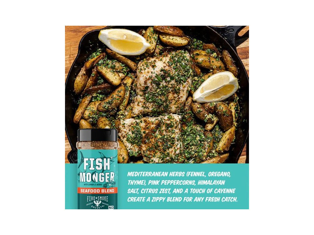 Směs koření na mořské plody Fish Monger je speciálně vyvinuta pro zvýraznění přirozené chuti všeho, co plave! Inspirovaná mořem, ale nejen mořskými plody, tato směs himálajské růžové soli, česneku, aromatických bylin, citronové a pomerančové kůry se hodí téměř ke všemu. Od krevet a lososa až po vepřové a kuřecí maso. Je to super všestranné koření pro každého, kdo má rád trochu citrusové kůry.