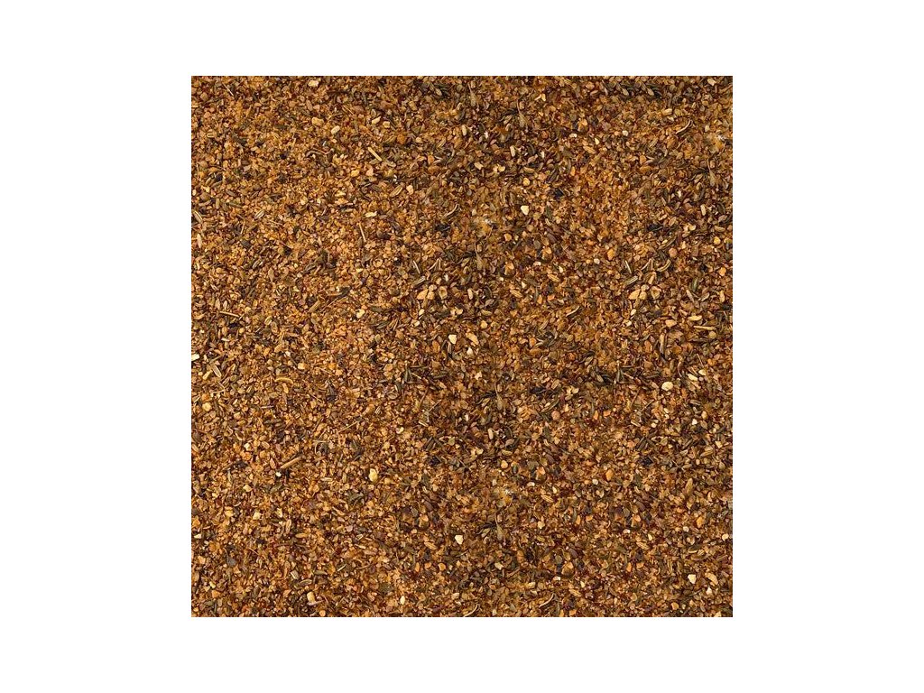 Složení: Sůl, koření (včetně fenyklu, kajenského pepře, oregana, tymiánu, černého pepře, petrželky a růžového pepře), dehydrovaný česnek, citronová a pomerančová kůra, cukr, himálajská růžová sůl, paprika a maximálně 2 % trikalciumfosfátu přidaného proti spékání. Bez glutamanu sodného, bez lepku, bez GMO.