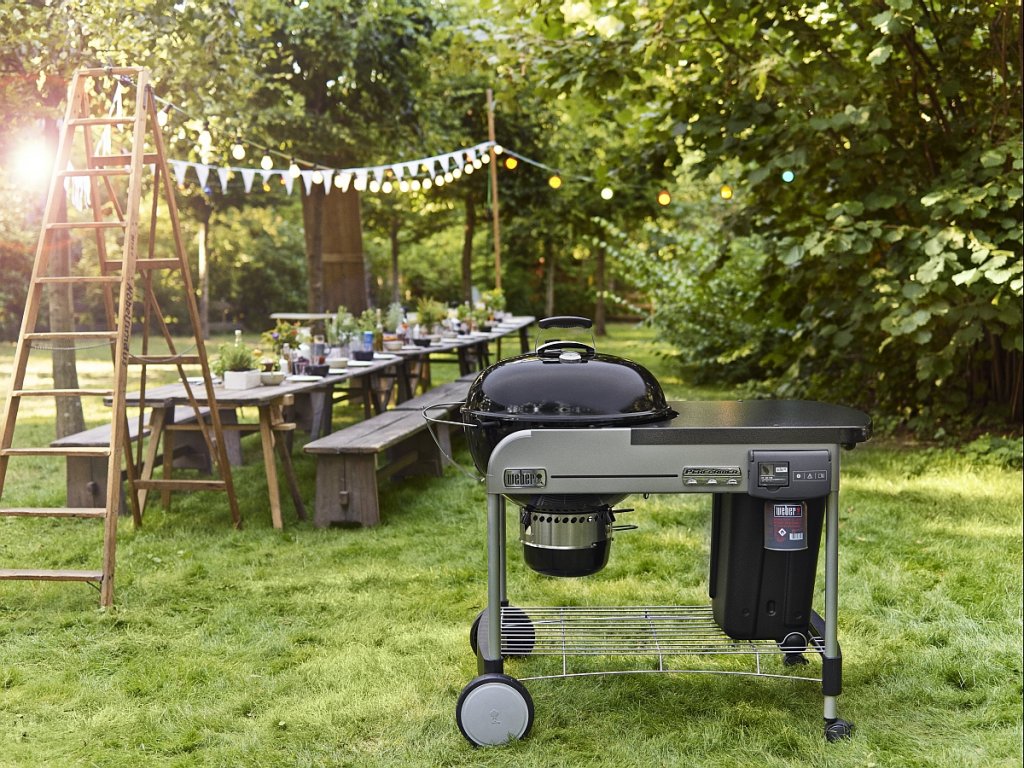 Zahradní gril Weber Performer Deluxe GBS Gourmet je klasický kotlový gril osazený ve stabilním kovovém vozíku, který z tohoto grilu činí nejprodávanější a nejoblíbenější kotlový gril Weber na dřevěné uhlí.