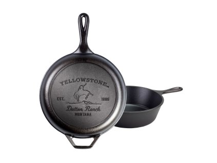 Dvoudílný set pánví pro smažení, dušení i zapékání. Odolná litina, víko-pánev, skvělá akumulace tepla a použití doma i venku.