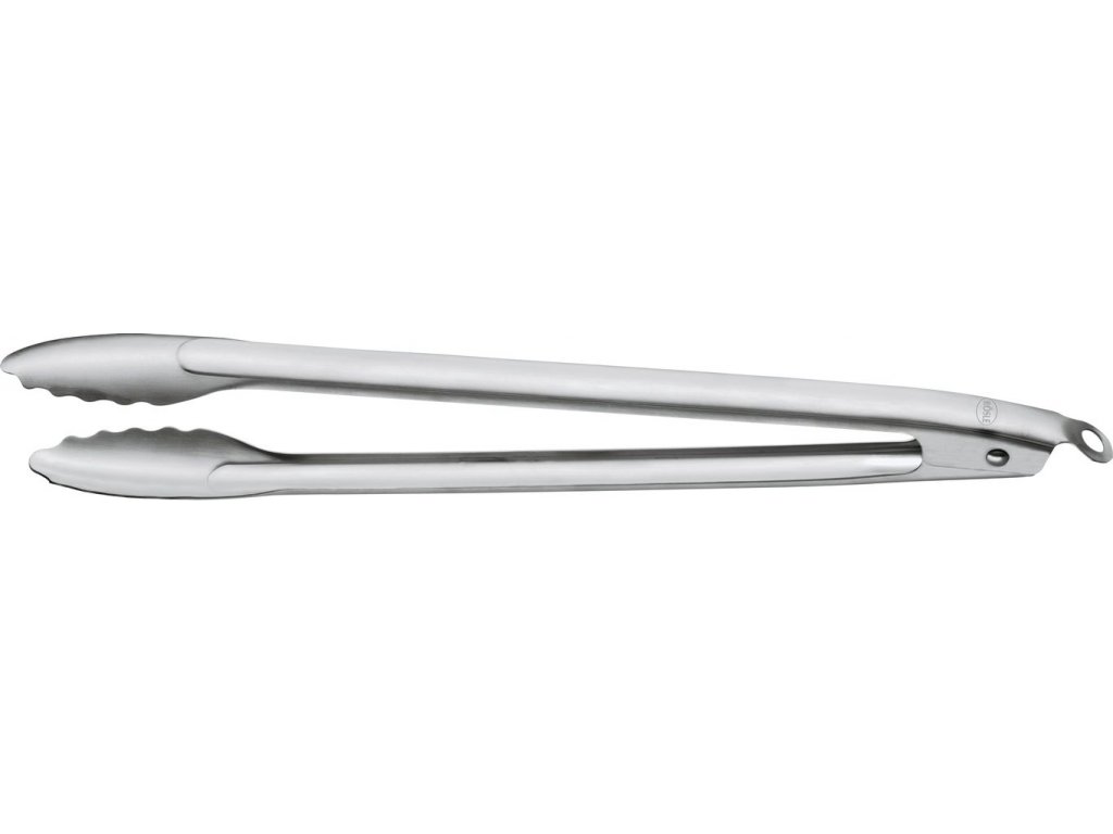 Nerezové grilovací kleště Rösle s automatickým zamykáním pro snadné složení.