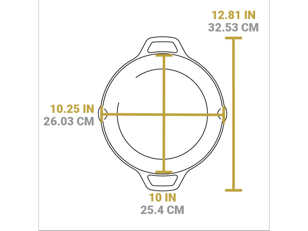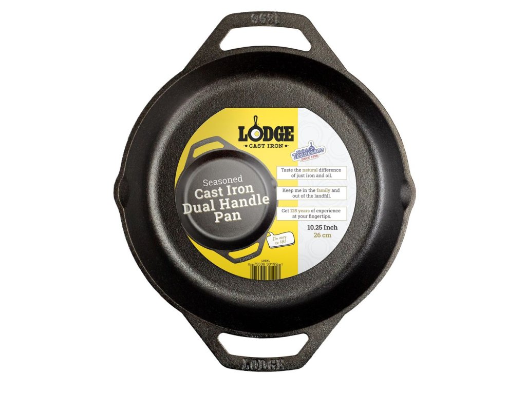 Litinová pánev Lodge o průměru 26 cm s dvěma madly je robustní kuchyňské nádobí vhodné pro vaření nejen doma, ale i venku. Je vyrobena z masivní litiny, skvěle vede a udržuje teplo a to z ní dělá ideální volbu pro restování, pečení a smažení. Můžete ji použít na všech typech varných desek, v troubě, grilu i nad přímým ohněm. Díky dvěma madlům se snadno přenáší, a to i přes vyšší hmotnost 2,5 kg. Vnitřní průměr dna činí cca 22 cm, vnitřní výška stěn je přibližně 4,5 cm. Pánev je předem z výroby ošetřená zapečeným jedlým olejem, který tak vytváří přírodní nepřilnavý povrch bez jakýchkoli chemických látek na bázi PFAS. Je tak připravena k okamžitému použití a při správné údržbě se zvyšuje kvalita nepřilnavého povrchu. Je to skvělá volba pro každodenní i víkendové vaření a zapékání v grilu nebo troubě.