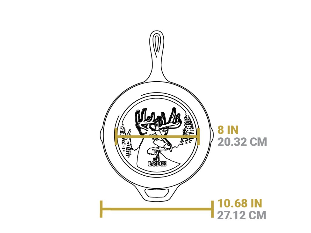 Masivní litinová pánev Lodge Wildlife Series Deer o průměru 26 cm a váze přibližně 2,45 kg je ideální na minutkovou úprava masa na tuku. Díky přírodnímu povrchu ze zapečeného jedlého oleje můžete pánev okamžitě používat. Poskytuje vynikající tepelnou vodivost, a akumulaci tepla, díky které se maso nezačne dusit ani ve chvíli, kdy celou pánev zaplníte. Je tedy perfektní na steaky, restování či pečení. Litina je čistá, odolná, bez chemické nepřilnavé vrstvy na bázi PFAS, a je použitelná na indukci, plynovém či sklokeramickém sporáku, v horkovzdušné troubě i v otevřeném ohništi či grilu .