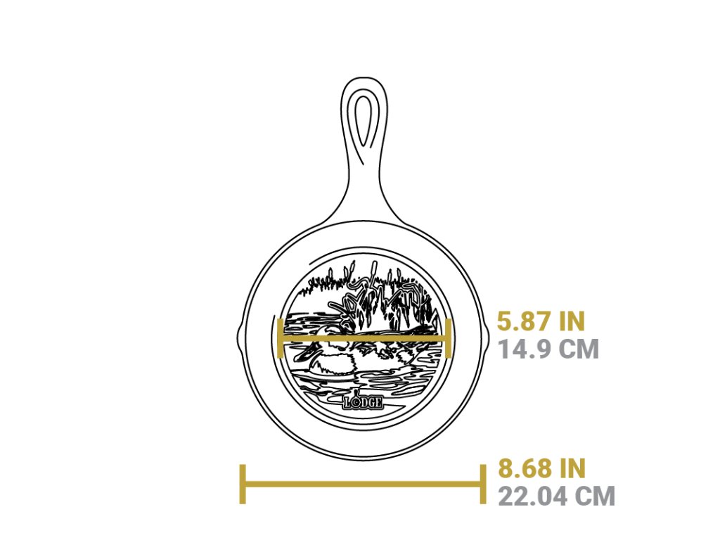 Litinová pánev Lodge Duck 20 cm je stylový kousek z řady Wildlife, zdobený reliéfem kačera na dně, který jí dodává osobitý říz. S vnější průměrem dna cca 15 cm, výškou kolem 4,7 cm a hmotností cca 1,6 kg nabízí perfektní akumulaci a rovnoměrné šíření tepla, ideální pro restování, smažení i dušení. Povrch je zcela přírodní, ošetřený zapečeným 100 % rostlinným olejem. Pánev je připravená k použití ihned po vybalení, bez chemického nepřilnavého povrchu na bázi PFAS.