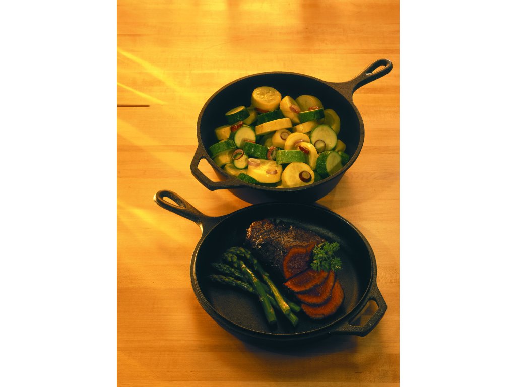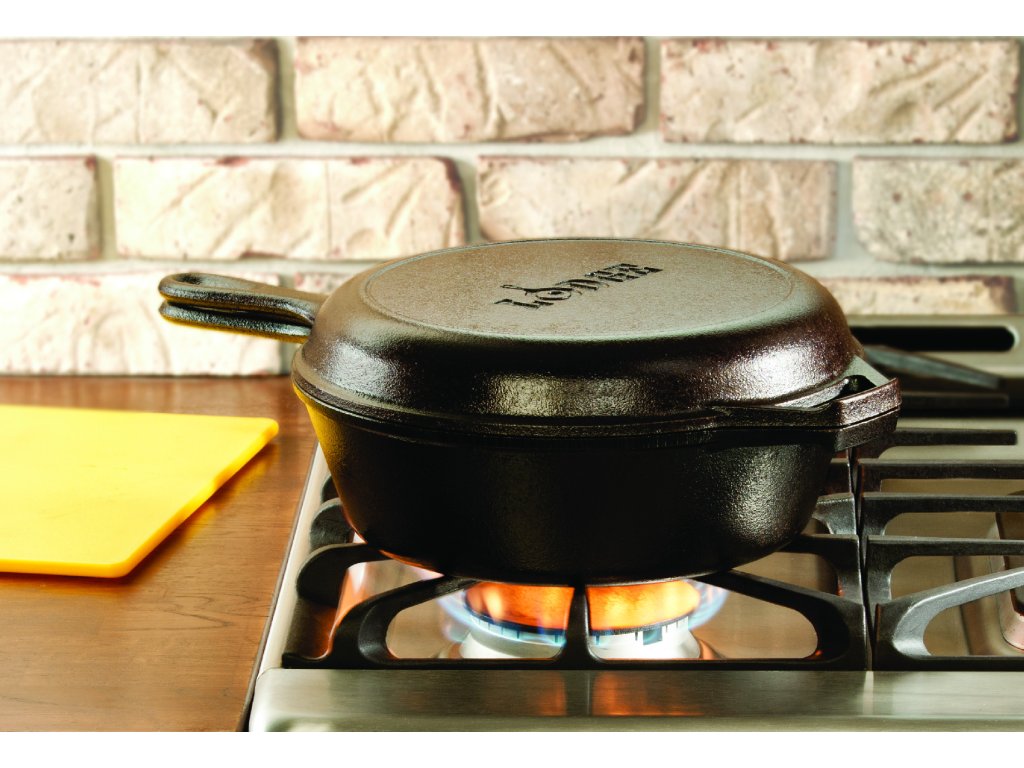 Litinové Combo Lodge 26 cm je dvojdílný set z masivní litiny, který tvoří hluboká pánev o průměru 26 cm a objemu 2,8 l a mělká pánev, kterou lze použít jako víko. Obě části jsou plně kompatibilní se všemi typy sporáků, troubou, grilem i otevřeným ohněm. Litina zajišťuje rovnoměrné rozložení tepla a vynikající akumulaci.