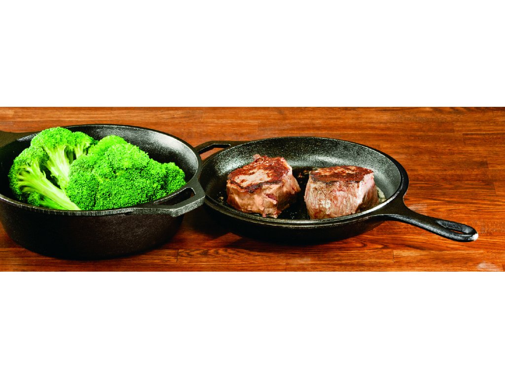 Pánve jsou ideální pro smažení, dušení i zapékání. Díky povrchu ošetřenému tzv. seasoningem je nádobí připravené k okamžitému použití a snadno se udržuje. Robustní provedení bez chemických úprav slibuje dlouhou životnost a univerzální využití doma i venku. Praktické dvě v jednom šetří místo i čas při vaření.