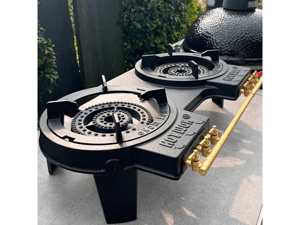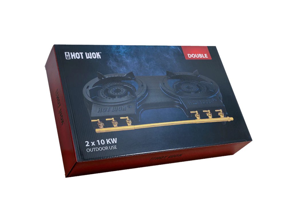 - Snadná údržba: Vyrobeno z kvalitní litiny, která se snadno čistí a zajišťuje dlouhou životnost. HOT WOK DOUBLE je nejnovějším přírůstkem do naší řady výkonných plynových hořáků – vyvinutých pro ty, kteří chtějí maximální teplo a všestrannost pro venkovní vaření.