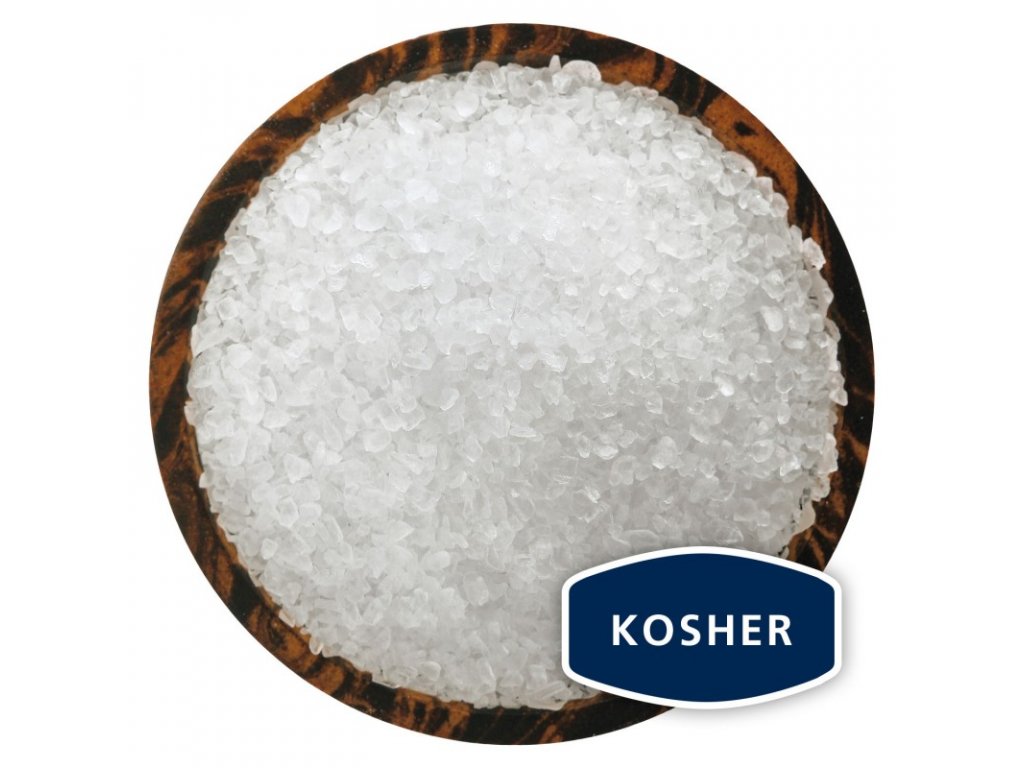 Sůl zrnitosti košer: Mořská sůl zrnitosti košer se skvěle hodí pro grilování a pečení mas i k dochucování pokrmů. Vyzkoušejte ji na domácích preclících nebo na lanýžích z tmavé čokolády. Můžete ji též použít k ozdobě okraje koktejlových sklenic.