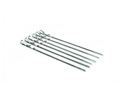 Sada 6 ks plochých nerezových špízů na masové špízy, mletý kebab, zeleninu, ryby nebo ovocné špízy.