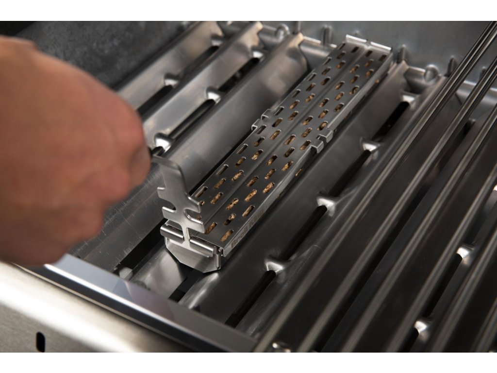 Pelety dodají připravovaným pokrmů v grilu zajímavou chuť. Stačí vybrat preferovaný druh pelet Broil King, vložit je do nerezového udícího zásobníku Pellet a instalovat na kryty hořáků či přímo na rošty plynového grilu. Jakmile začne stoupat kouř můžete začít grilovat. Jedná se o snadnou cestu, jak dosáhnout kouřové vůně a chuti v plynovém grilu.