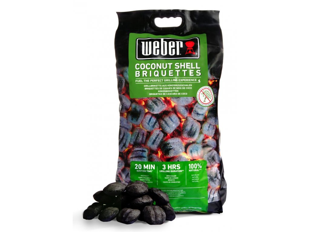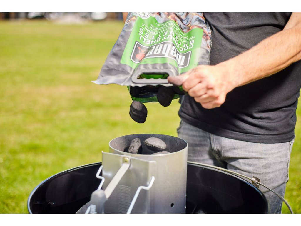 Brikety Weber z kokosových skořápek představují vysoce výkonnou variantu paliva a poskytují až 3 hodiny grilování. Toto palivo se rozpálí během 20 minut, takže můžete začít grilovat bez dlouhého čekání. Je vyrobeno ze 100% přírodních surovin – karbonizovaných kokosových skořápek a tapiokového škrobu – a neobsahuje žádné dřevo.