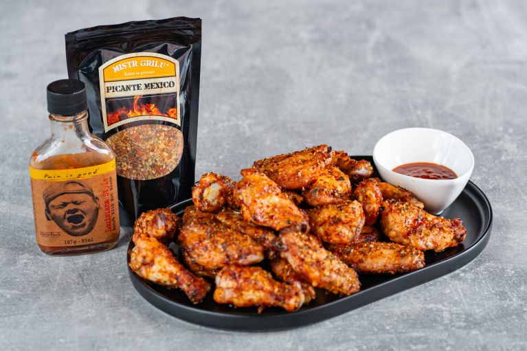 - Klasická BBQ směs: sladká paprika, uzená paprika, česnek, cibulový prášek, třtinový cukr, černý pepř, chilli.